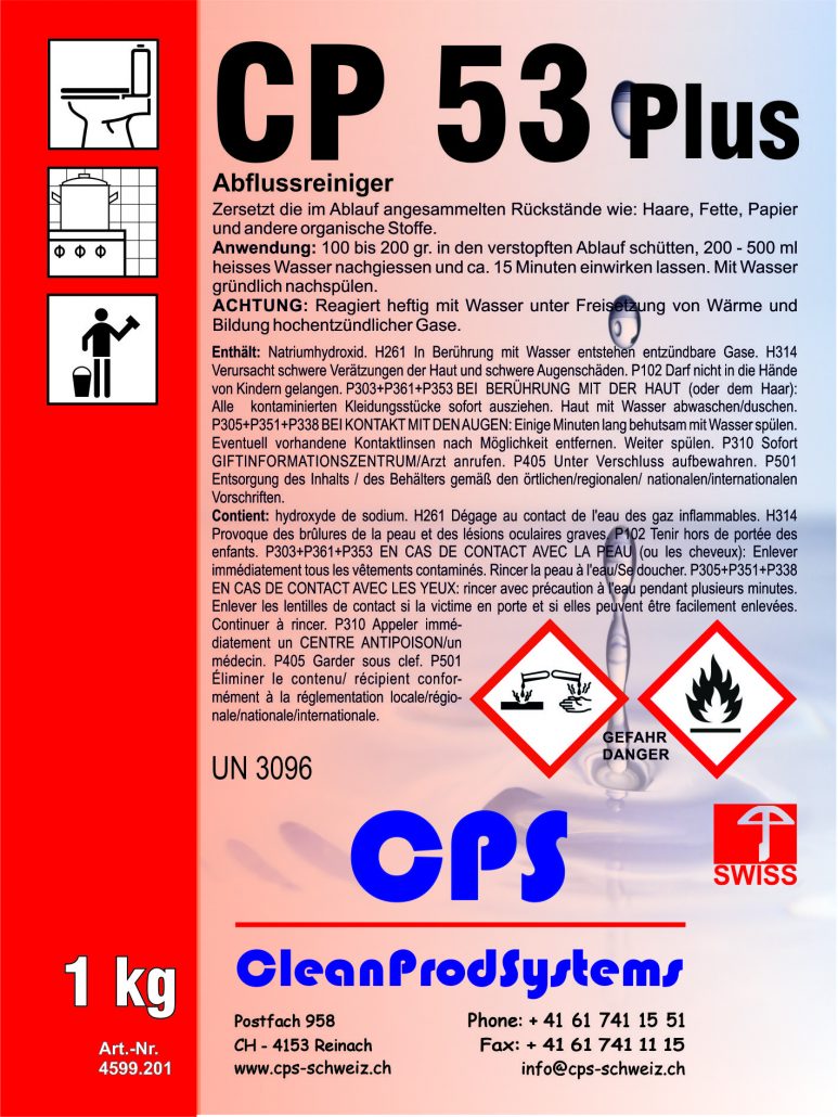 Gebrauchsfertiger Reiniger in pulverform zum öffnen von verstopften Siphons und Abflüssen.